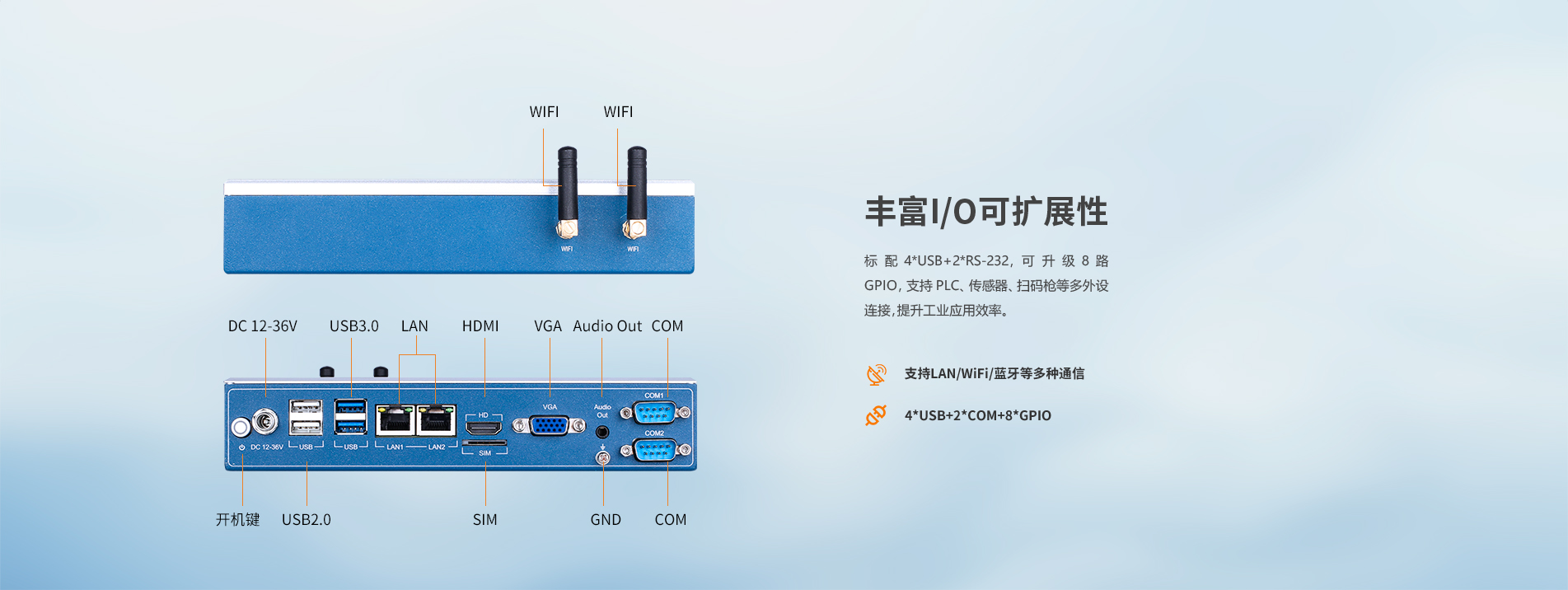 备灵活可扩展的I/O接口,整机结构坚固,耐高低温、抗振抗干扰,