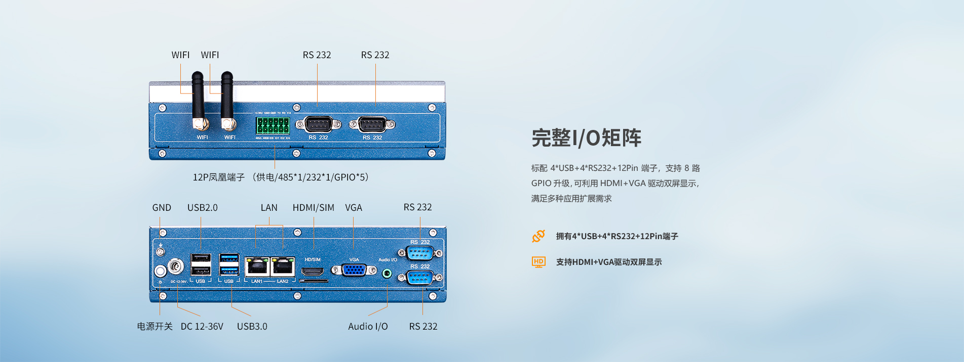 用全金属机身+无风扇+双面式I/O分布设计,小巧紧