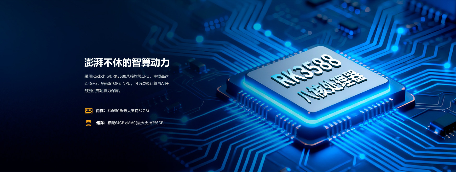 标配Rockchip®RK3588八核64位处理器,集成6 TOPS AI算力,