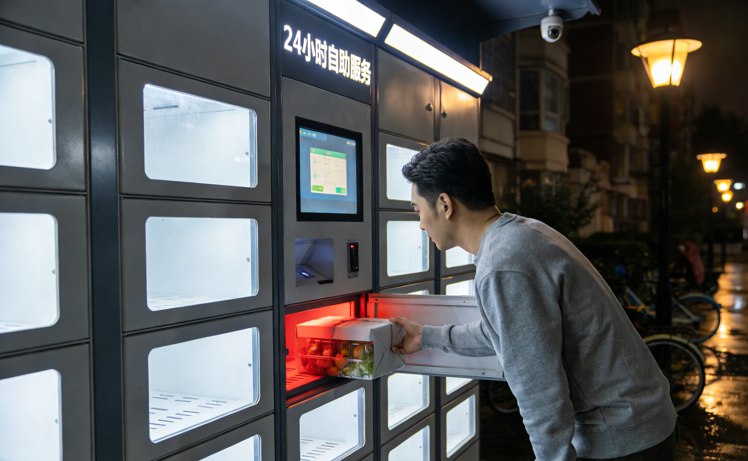 四信工控机赋能智能生鲜柜:通过四信一体式工控机F4930,为智能生鲜配送柜提供无线网络传输,实现柜体与用户后端平台的联网功能。系统自动匹配生鲜产品信息与云平台订单,推送取件验证码至用户手机,提升配送效率。