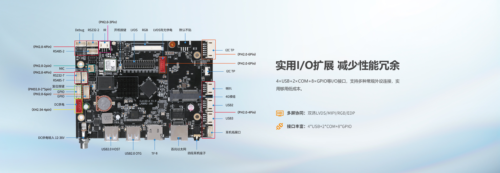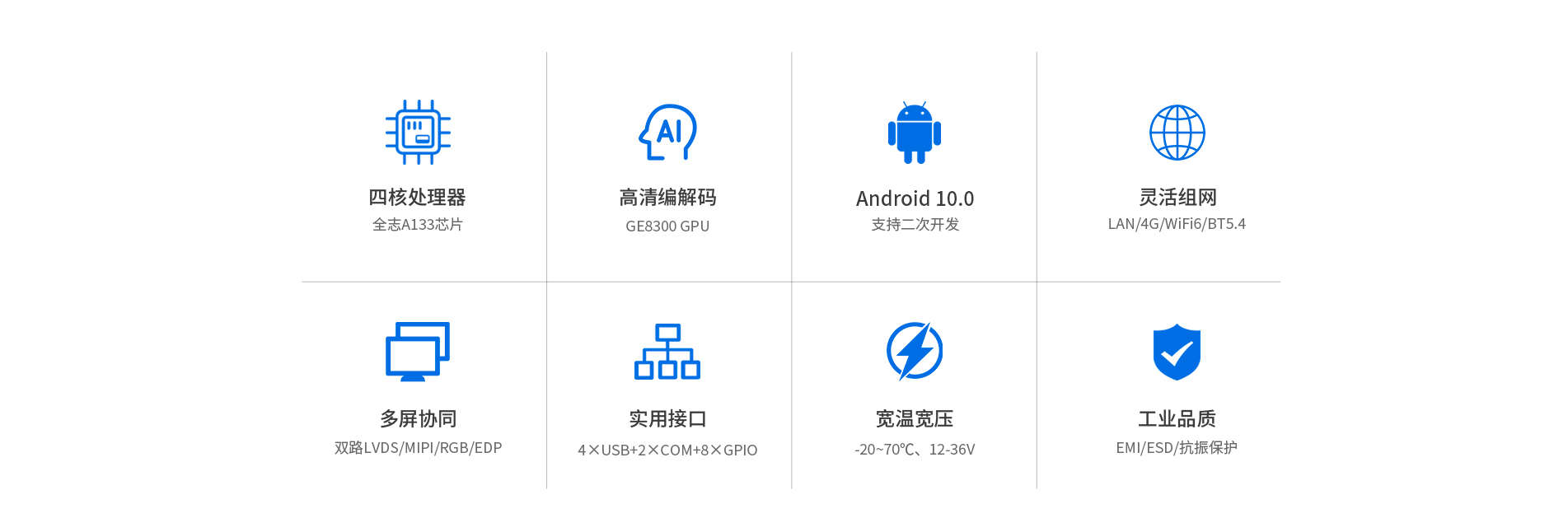 物联网网关、智慧商显、自助终端、安防监控等领域。